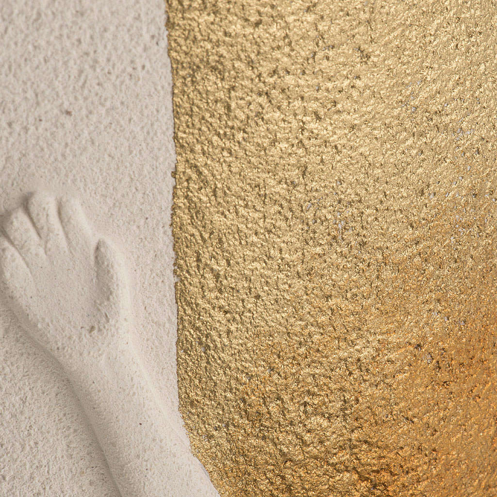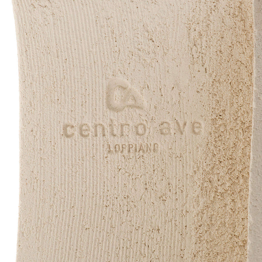Kruzifix auf Stele weissen Ton und Gold, 29,5cm. Der Ton wird zuerst handgearbeitet und dann bei über 1000°C gebrannt. Hochwertiges Produkt, realisiert bei Centro Ceramiche in Loppiano (Florenz).
