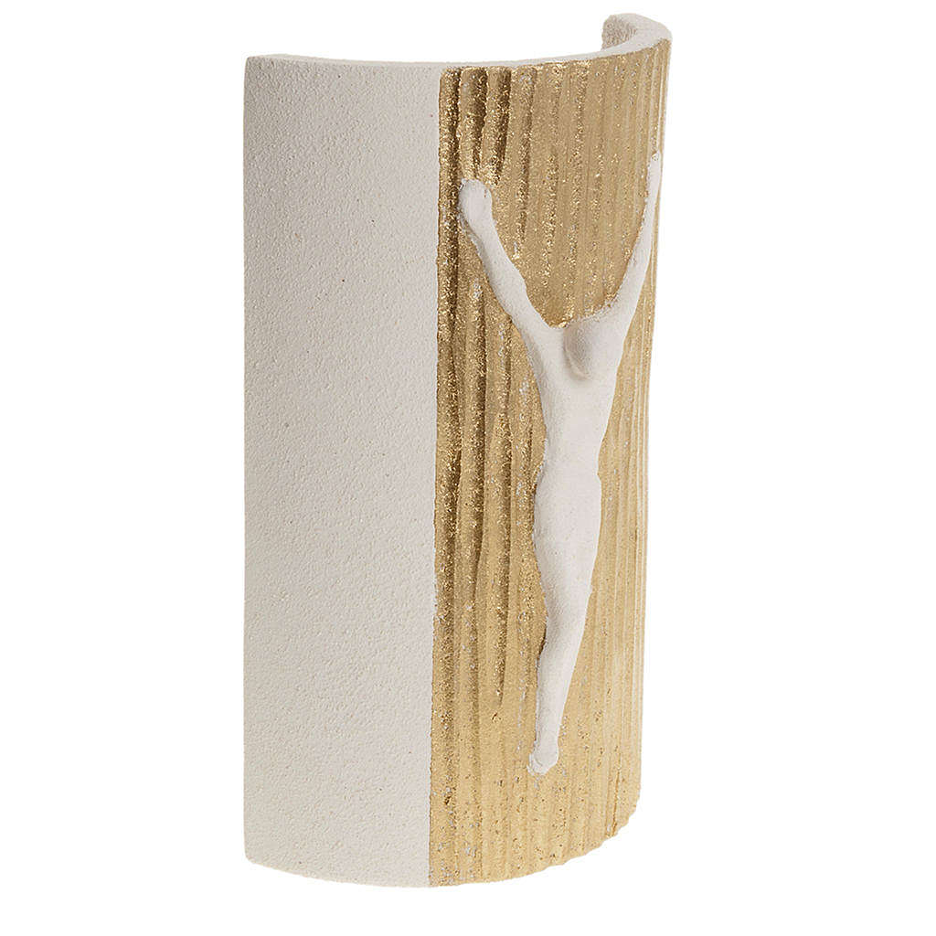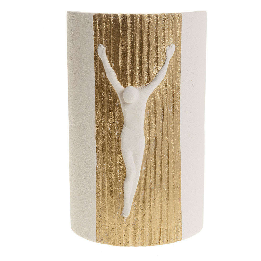 Ab sofort verfügbar Kruzifix golden dekoriert, 17,5cm. Der Kruzifix ist aus weissen Ton mit goldenen Dekorationen. Der Ton wird zuerst handgearbeitet und dann bei über 1000°C gebrannt. Hochwertiges Produkt, realisiert bei Centro Ceramiche in Loppiano (Florenz).
