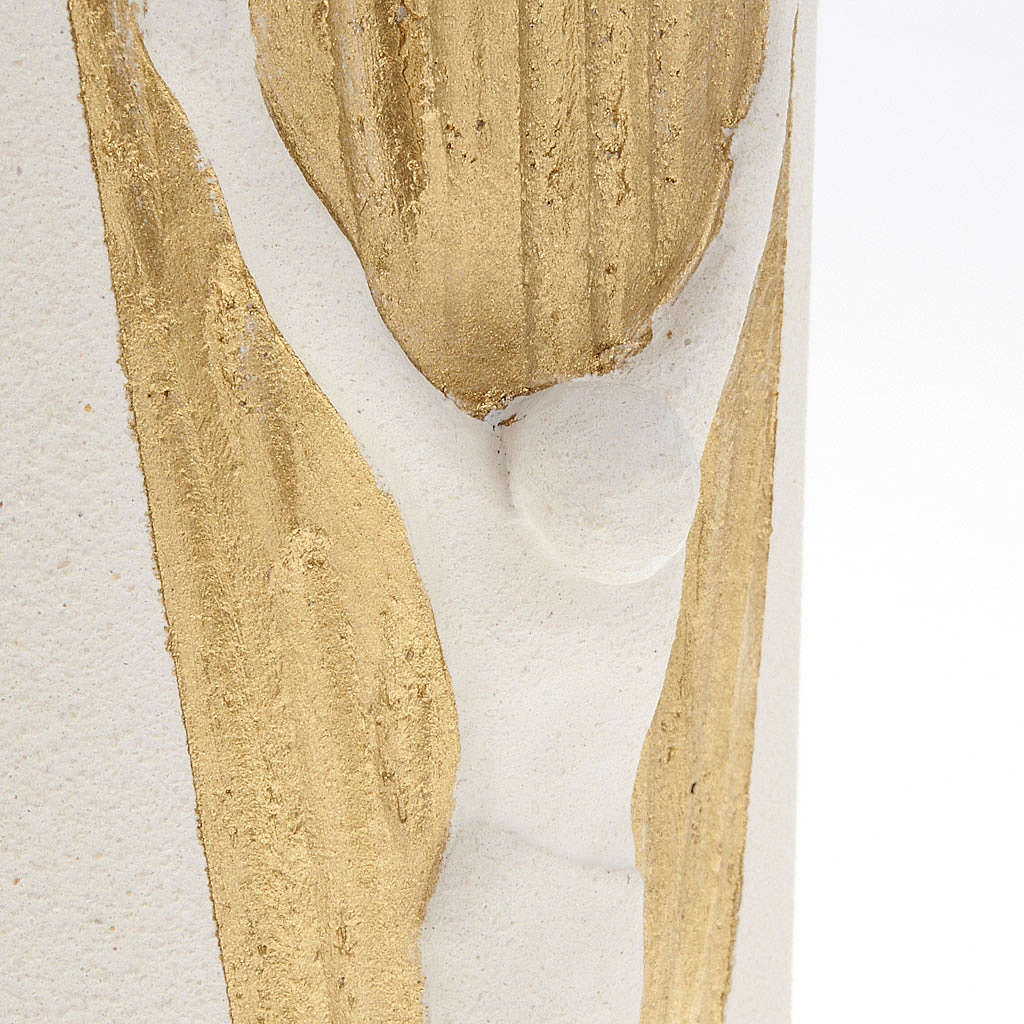 Ab sofort verfügbar Kruzifix mit goldenen Scheinen, 17,5cm. Der Kruzifix ist aus weissen Ton mit goldenen Scheinen. Der Ton wird zuerst handgearbeitet und dann bei über 1000°C gebrannt. Hochwertiges Produkt, realisiert bei Centro Ceramiche in Loppiano (Florenz).