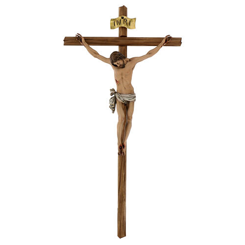 Farbiges Kruzifix aus Grödnertal Holz mit Kerben