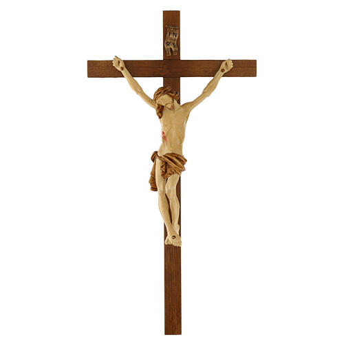 Kruzifix Nussbaumholz handbemalt. Kruzifix realisiert aus Nussbaumholz und handbemalt.