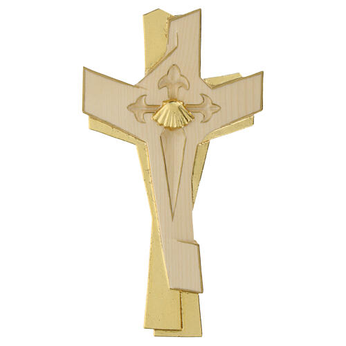 Muschelkreuz des Pilgers aus Ahornholz Grödnertal mit Goldfinish