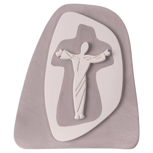 Christus am Kreuz in Terrakotta, Relief in Schildpattfarbe, Centro Ave 20x20 cm