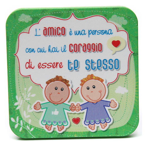 Schönes Bild aus Holz, verpackt in einer Jutetasche und bereit zum verschenken oder als Gabe für Gäste.