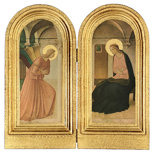 Diptychon Verkündigung – nach Beato Angelico – Holzrahmen mit Blattgold-Optik – 32 cm hoch