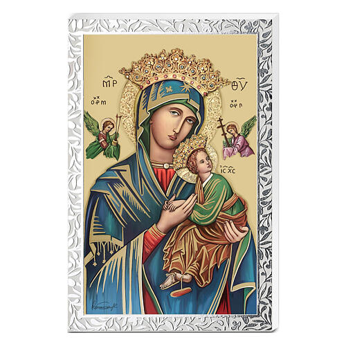 Gottesmutter der immerwährenden Hilfe – Bild mit silberfarbenem Rahmen von Valenti Argenti, 17,5x11,5 cm