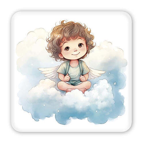 Kleines Bild, Engel mit verschränkten Beinen auf Wolke – 10 x 10 cm