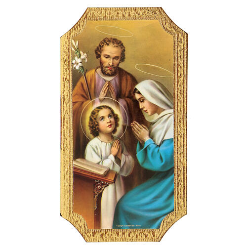 Konturgeschnittenes Wandbild aus Pappelholz mit der Darstellung der Heiligen Familie.