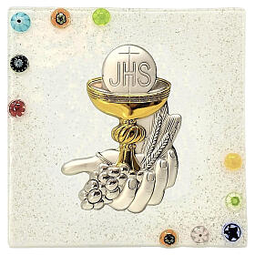 Bildtafel aus Murano-Glas – Erstkommunionsymbole, weiß, 10 x 10,5 cm