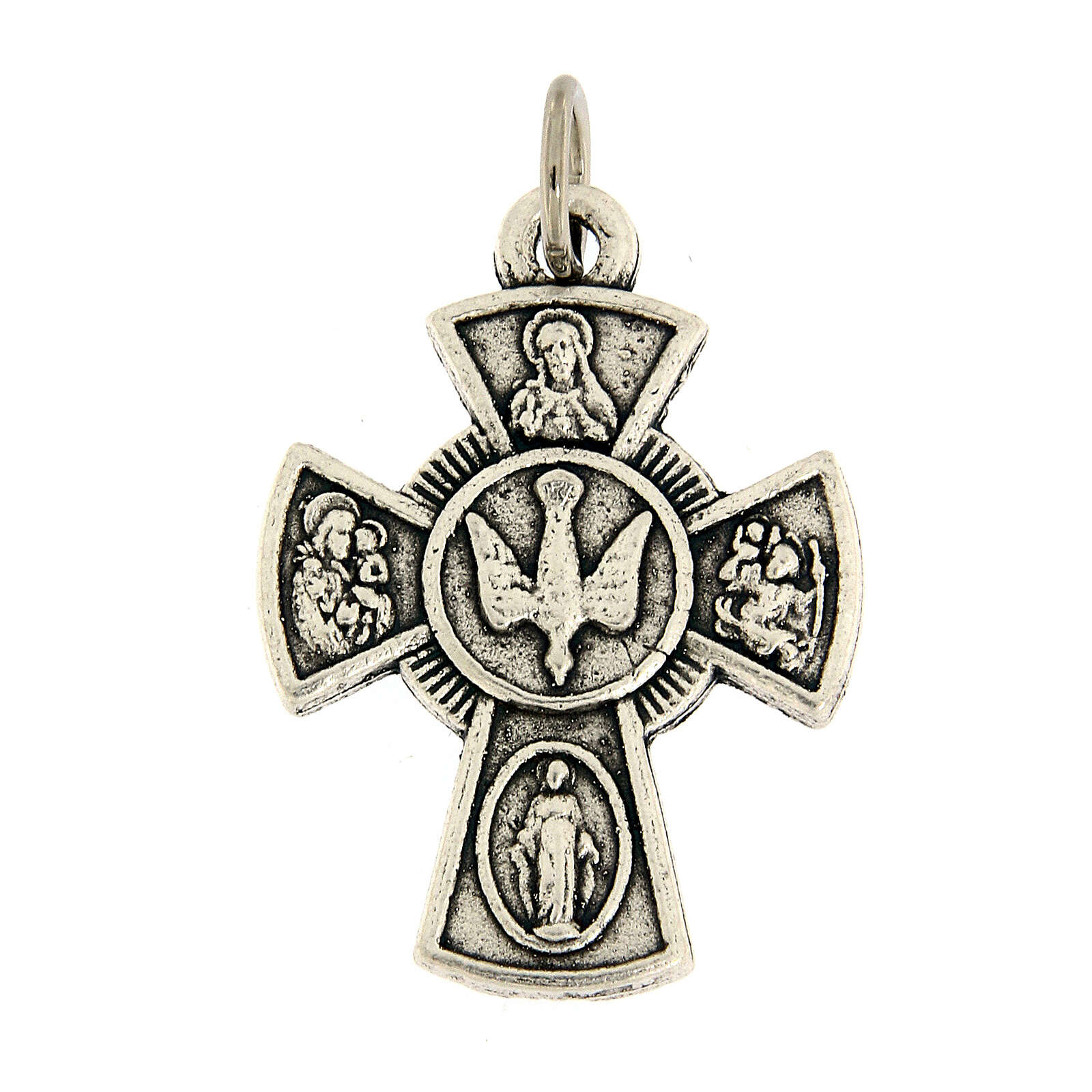 Schöner Anhänger in Form eines Kreuzes, mit silberner Legierung und den Symbolen der Konfirmation.