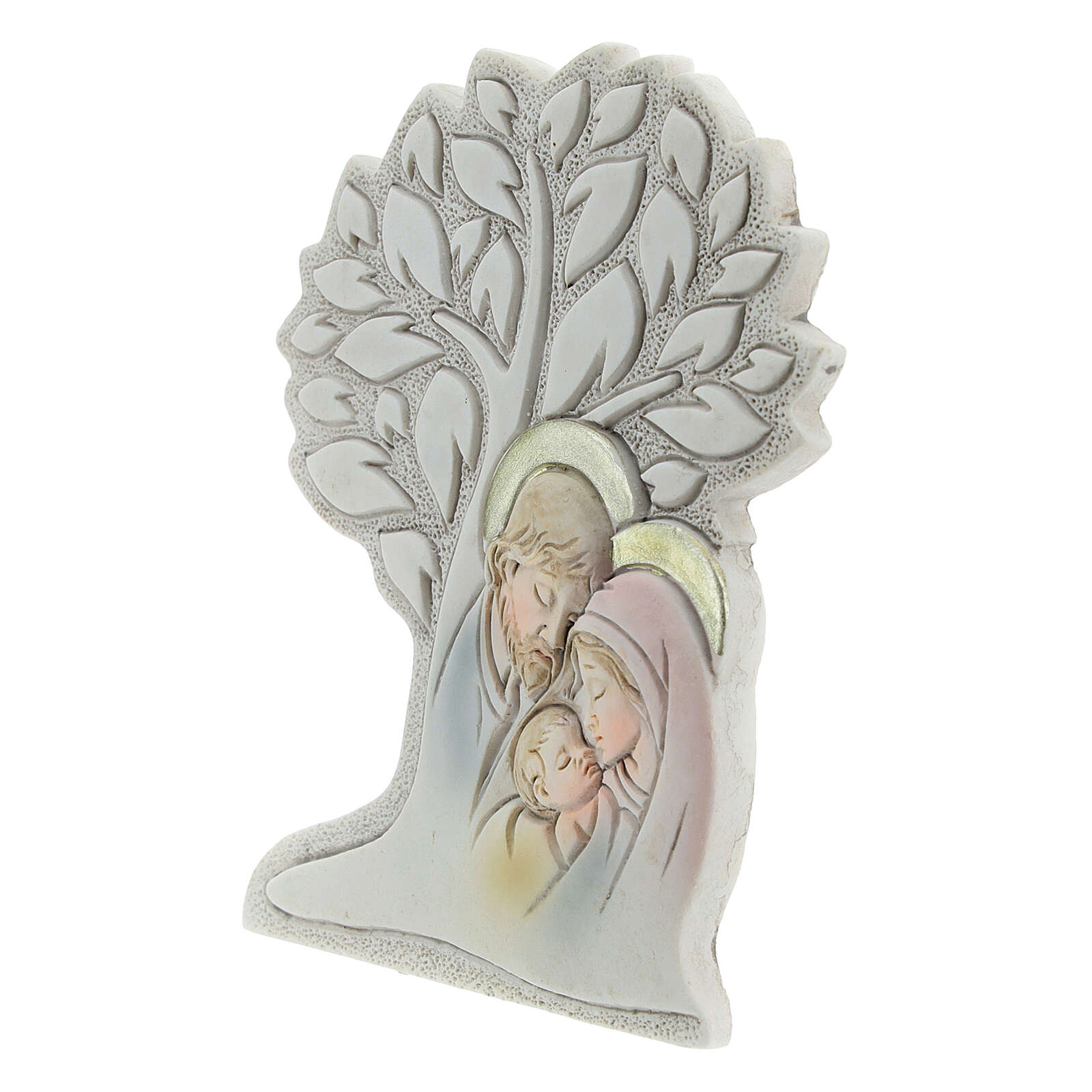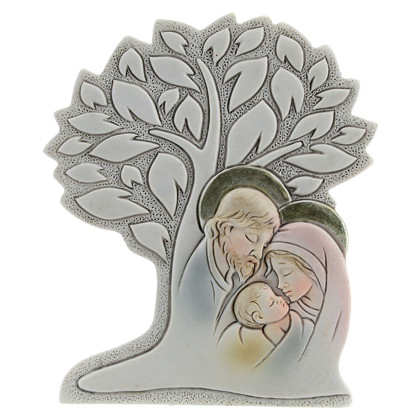 Diese schöne Figur des Baum des Lebens wurde aus Harz gefertigt und mit dem Motiv der Heiligen Familie verziert. Das Bild wurde farblich hervorgehoben und mit goldenen Details versehen.