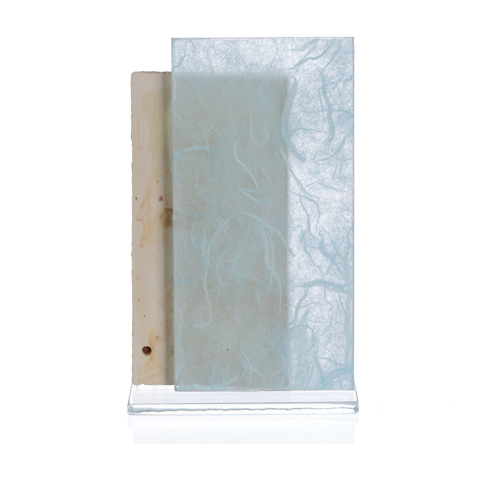 Bild Schutzengel 11,5cm hellblau. Andenken mit Bild in Relief realisiert aus Kunstmarmor und Glas.