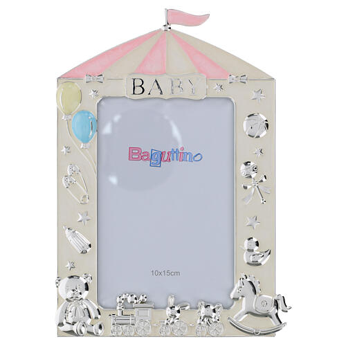 Bilderrahmen mit Zirkuszelt in Rosa und Spielzeug 20x15 cm Bagutta.