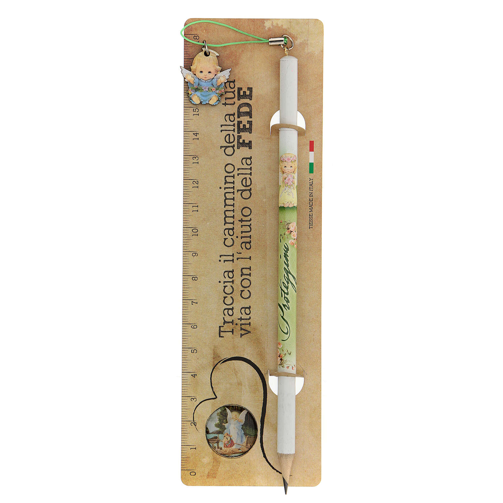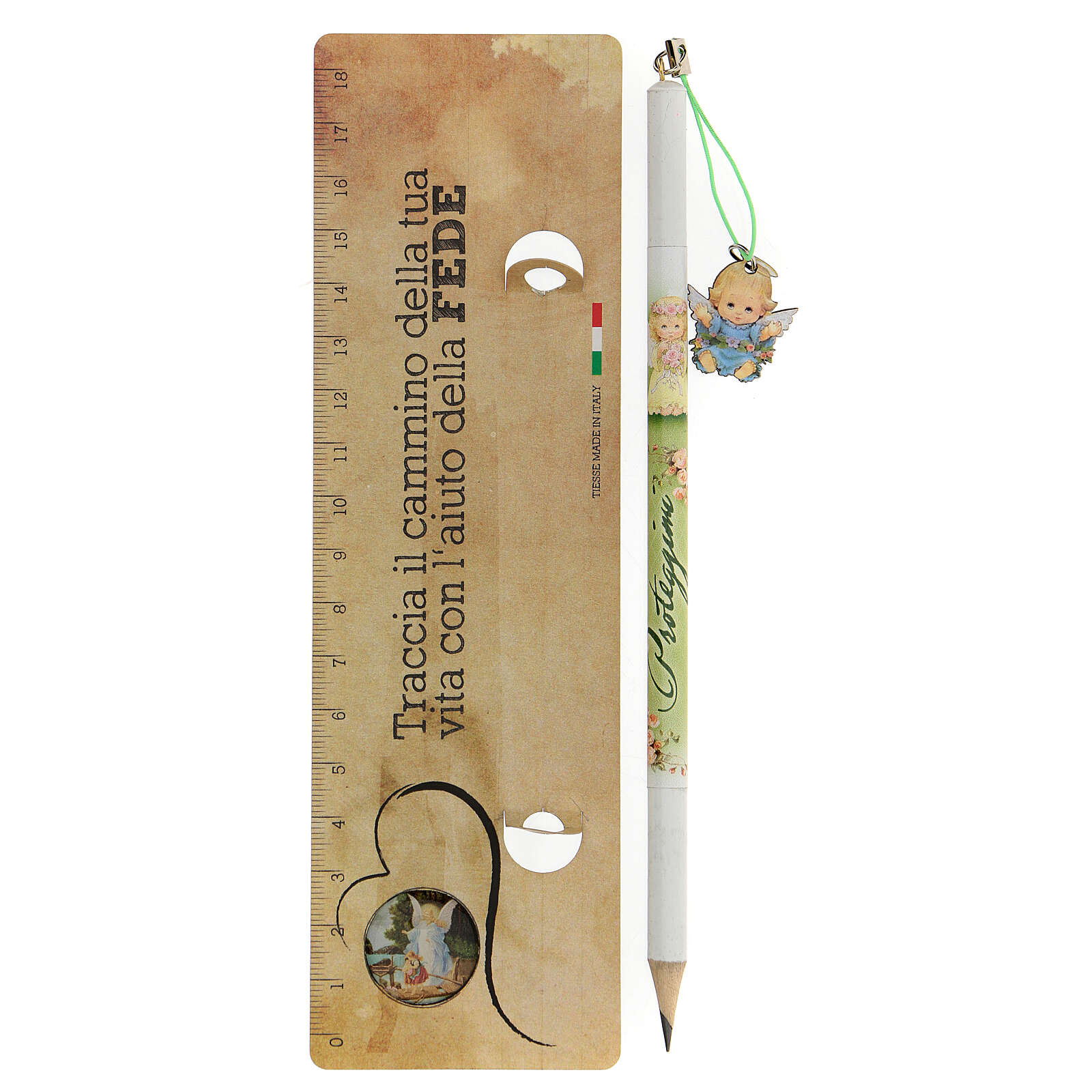 Bleistift und Lineal mit Engelchen für Jungen