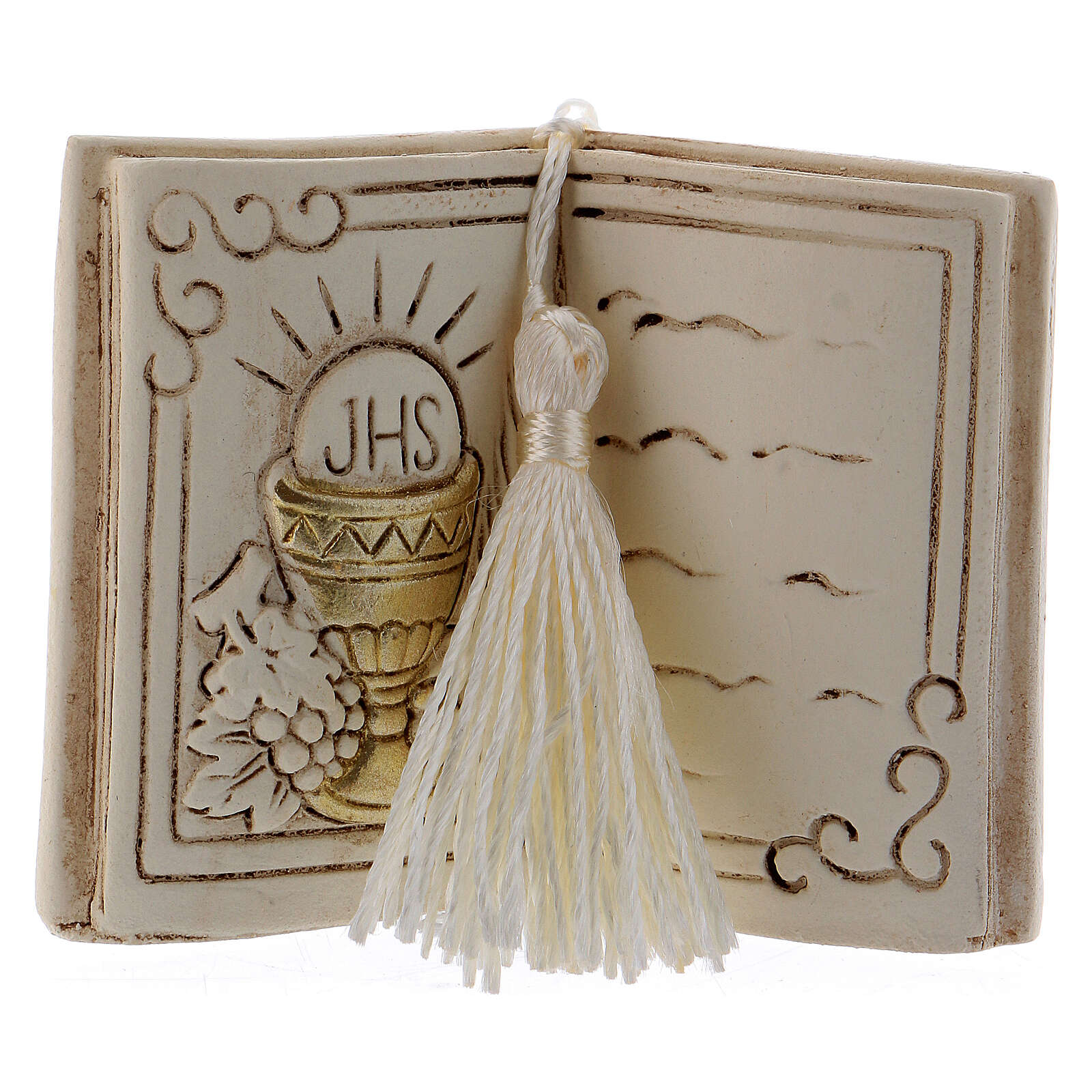 Gastgeschenk in Buchform mit Motiv von Kelch und Trauben, 7 cm