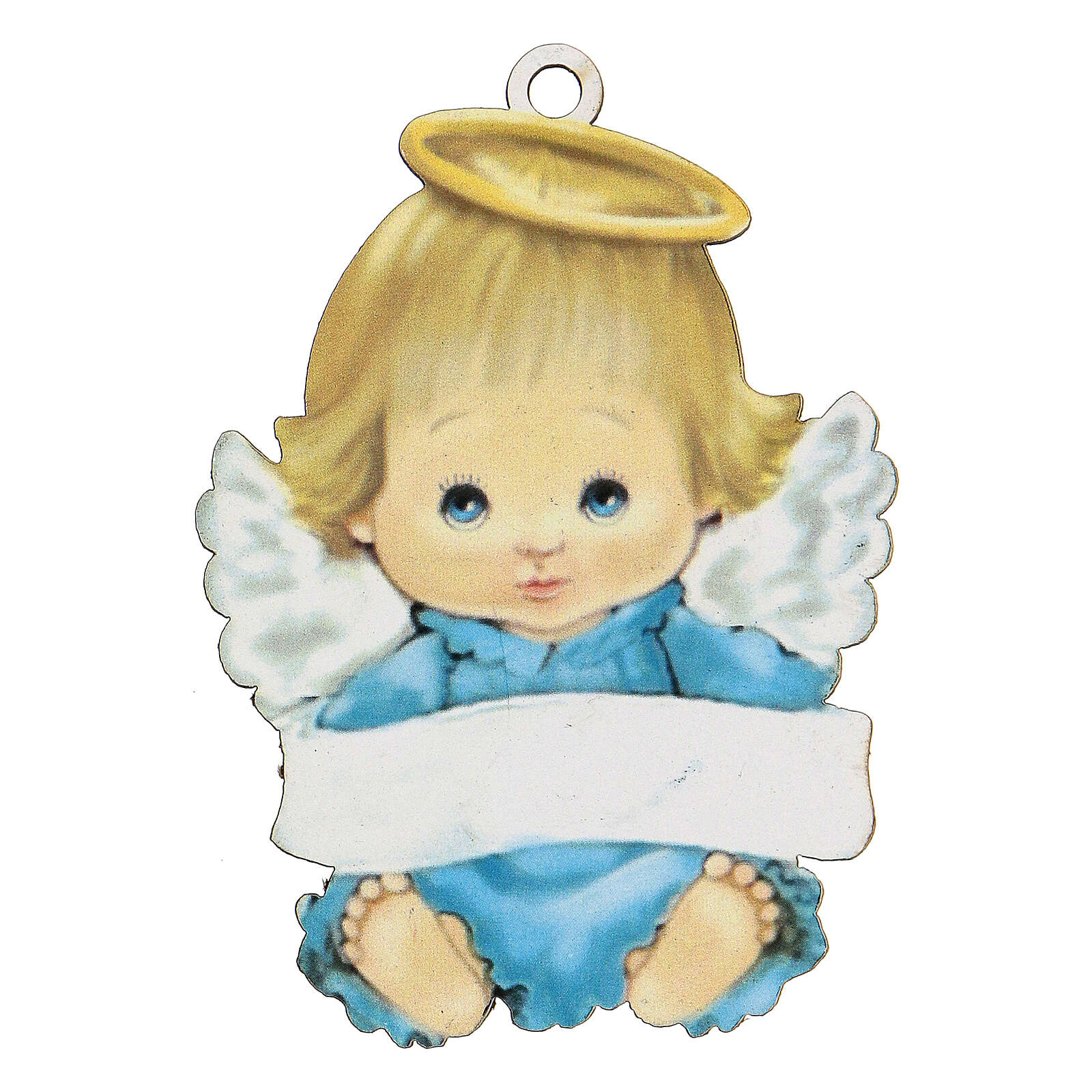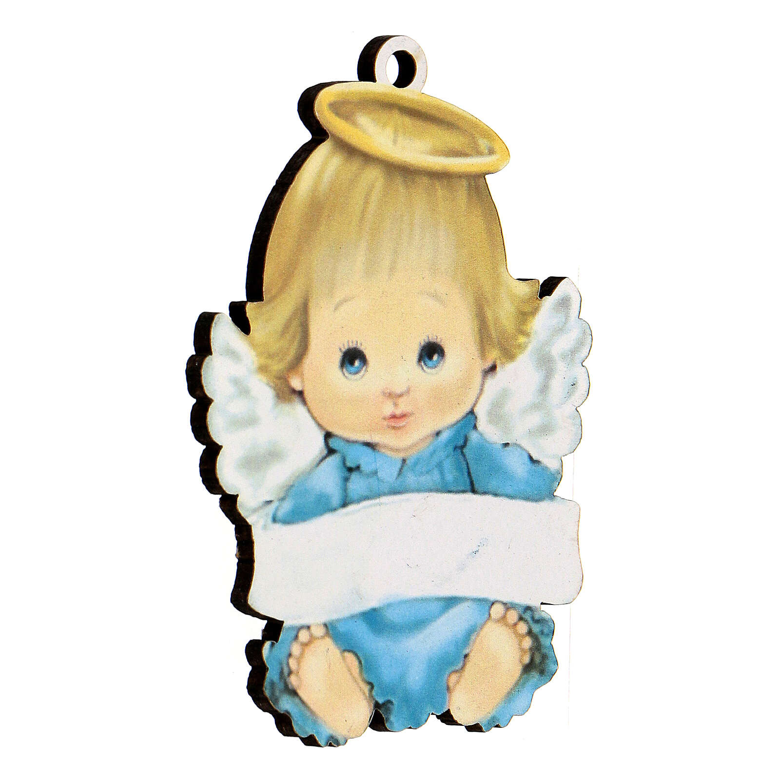Erinnerung für Jungs, Engelsfigur hergestellt aus Holz. In der Mitte kann der Name des Kindes geschrieben werden. Durch das obere Loch kann es ganz einfach an der Wand angebracht werden.