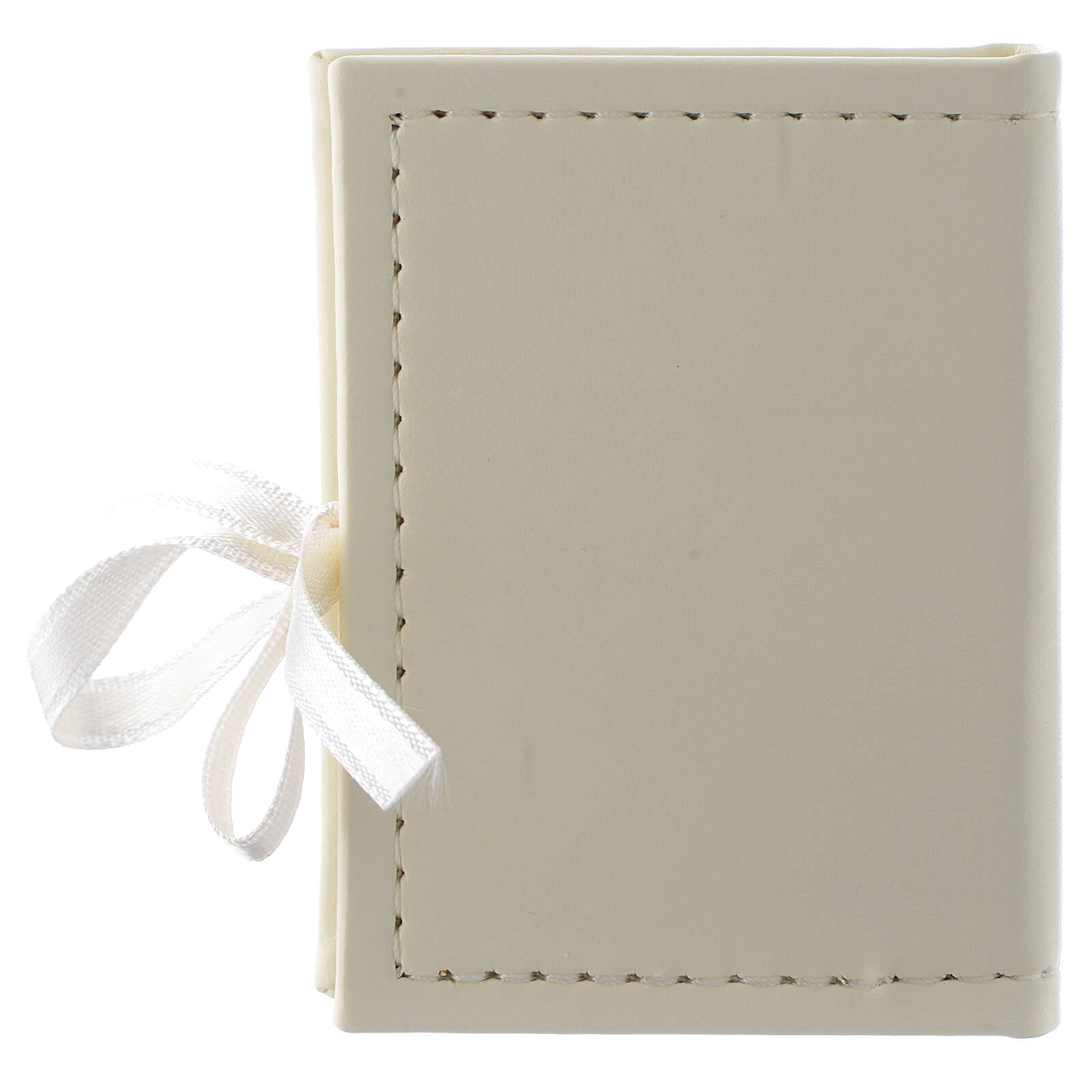 Box aus Kunstleder mit Rosenkranz und silbernem Relief auf der Außenseite.