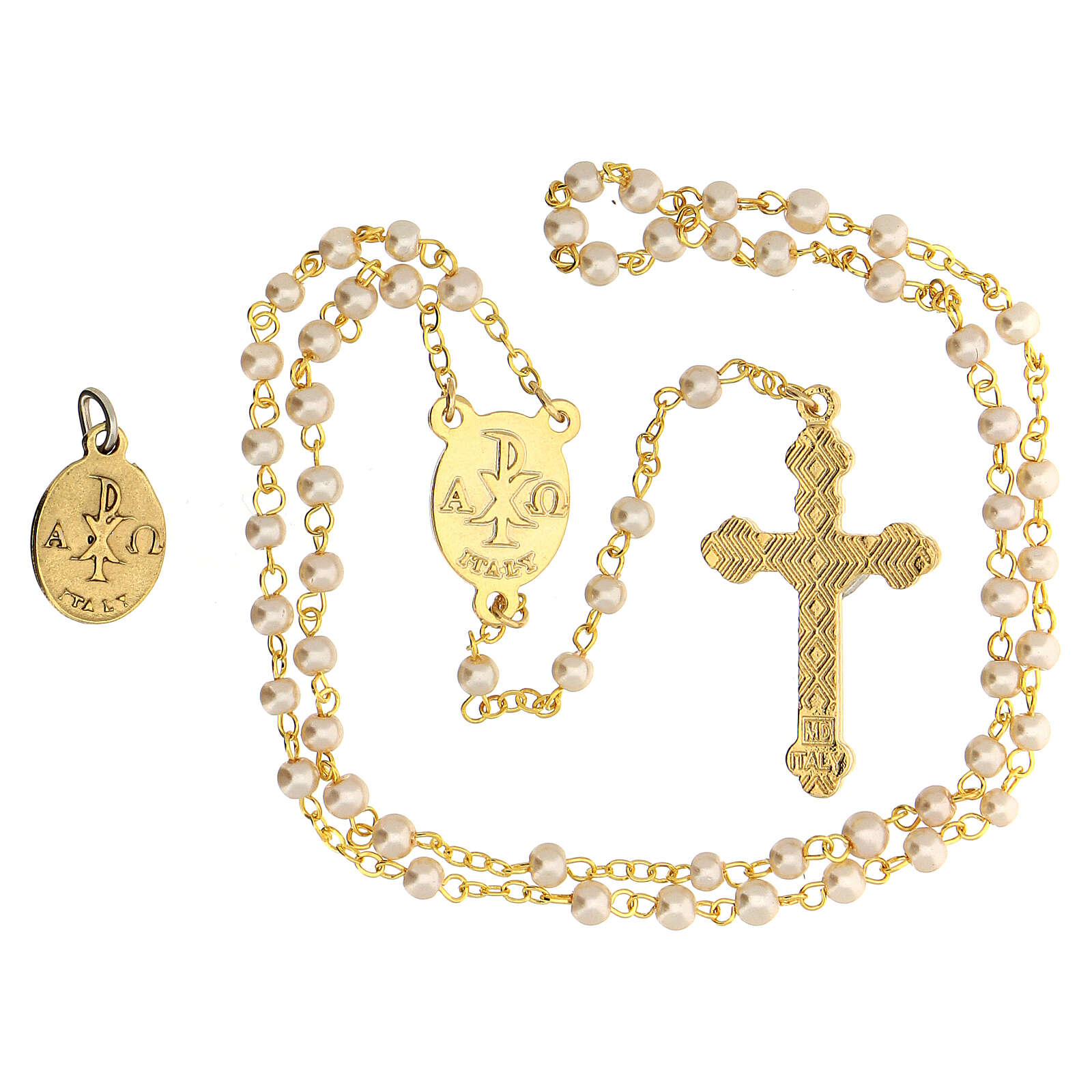 Set aus Rosenkranz und Anhänger in gold und weiß zur Kommunion
