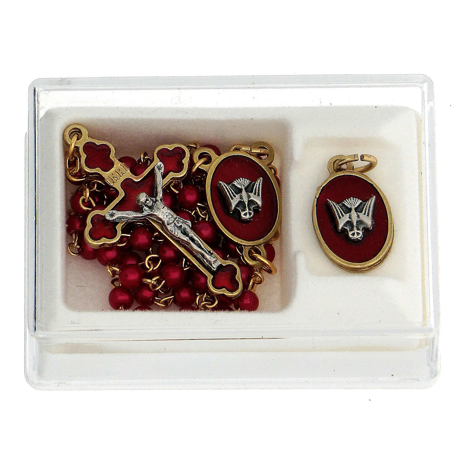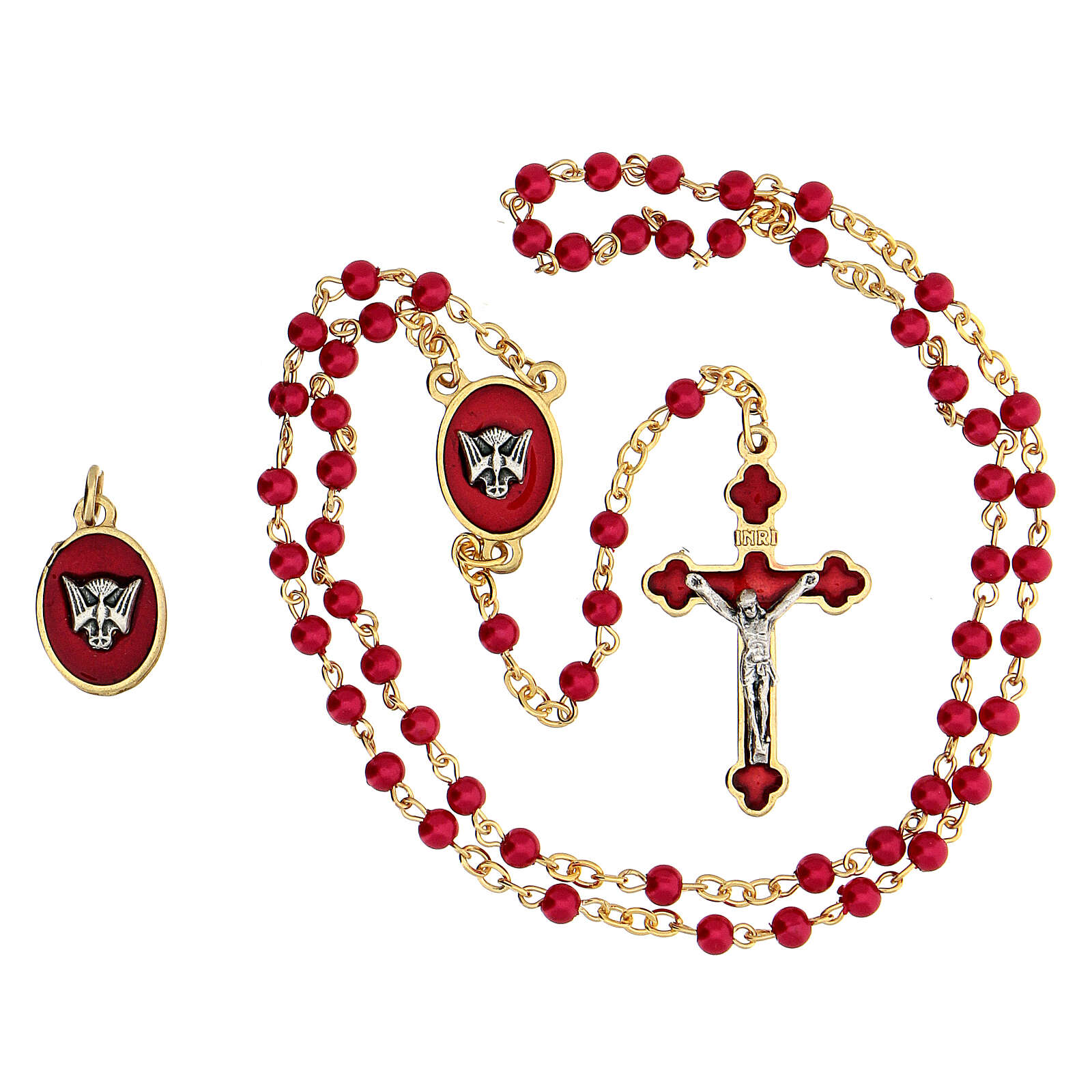 Set aus Rosenkranz und Anhänger in rot und gold zur Konfirmation