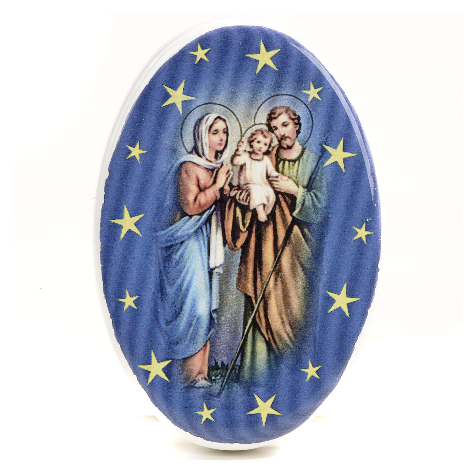 Magnet Keramik heilige Familie oval. Der Magnet ist aus Keramik und zeigt ein Bild der heiligen Familie.