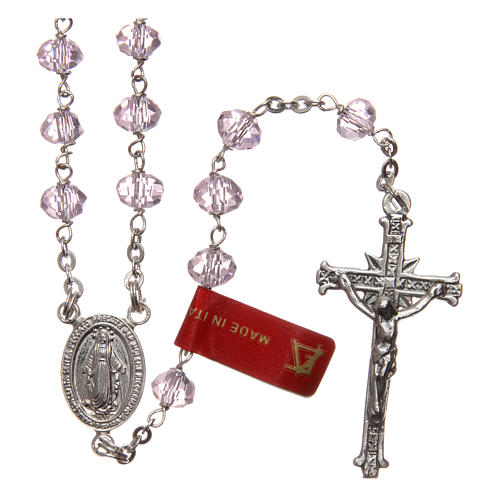 Rosenkranz Silber 925 rosa Kristallperlen 6mm. Rosenkranz realisiert aus Silber 925 mit rosa Kristallperlen von 6mm.