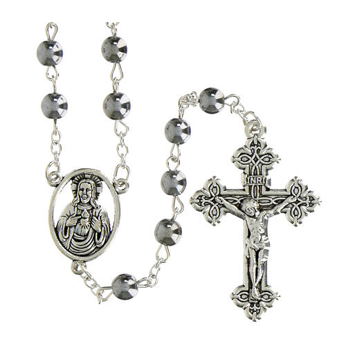 - Silberner Rosenkranz Glasperlen 6mm Herz Jesu