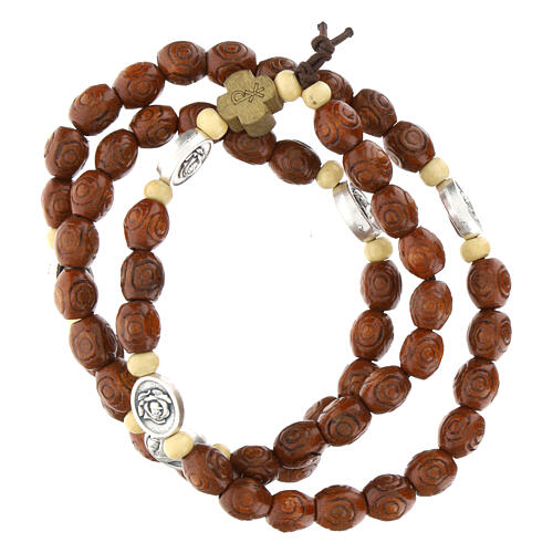 Rosenkranzarmband aus Holzperlen mit elastischer Rosa Heilige Rita.