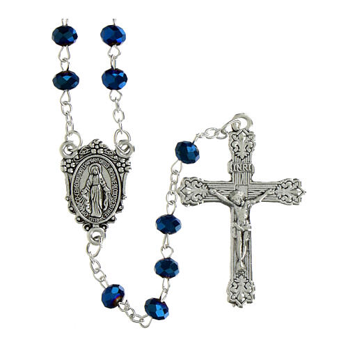 Rosenkranz der Wundertätigen Madonna mit matten blauen 6x4mm Kristallperlen