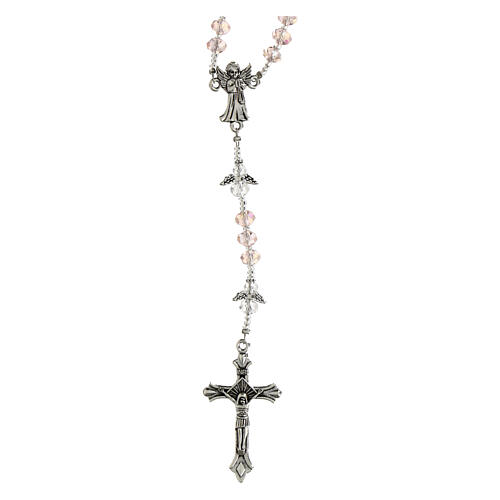 Schutzengel-Rosenkranz aus rosa Kristallperlen mit Engel-Pater in 6x4mm