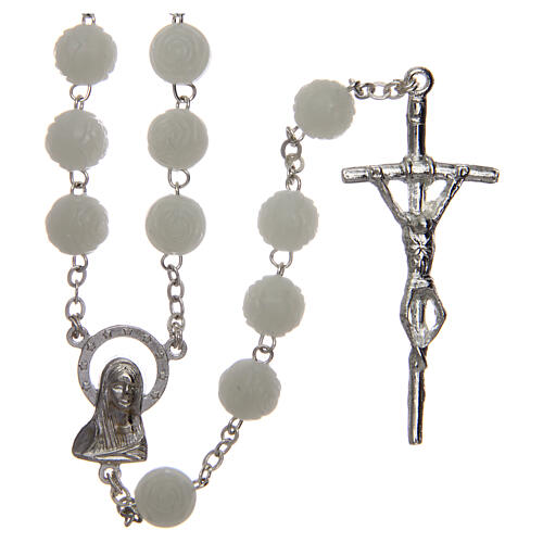 - Rosenkranz mit weißen Perlen in Form von Rosen, 8 mm