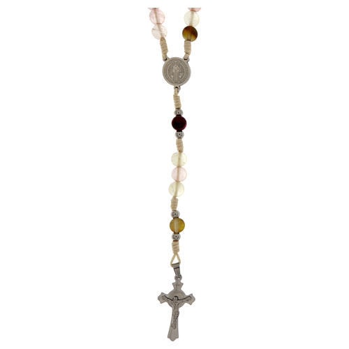 Rosenkranz Heiliger Benedikt aus weißem Seil und rosa vulkanischer Quarz 6 mm.