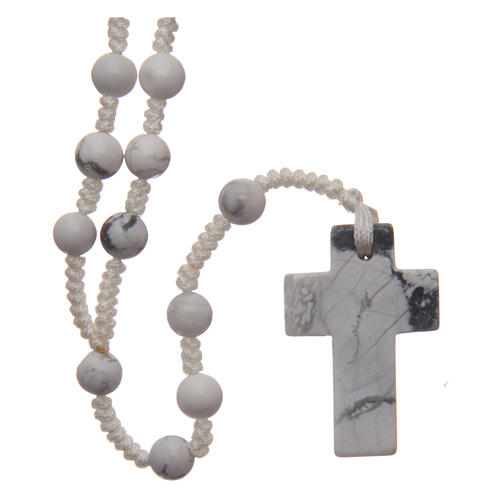 Rosenkranz mit runden weißen Perlen aus Stein, 6 mm.