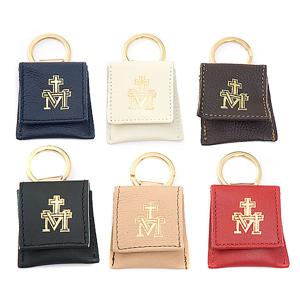 Schluesselbund fuer Rosenkranz mit Perlen von 4 Millimeter geeignet, Zehner Rosenkranzen aus Holz oder aus Metall. Es ist aus echten Leder, hat einen Knopf um es automatisch zu schliessen. Es zeigt den Schrift "Ave Maria" und dem vergoldeten Bild der Madonna. Wenn Sie mehr als 300 Stuecke brauchen, an Stelle von dem Schrit "Ave Maria" kann man die Name der Gemeinde usw. drucken ohne Etwas mehr zu bezahlen. Man kann das Produkt innerhalb 15-20 Arbeitstagen erhalten. Fuer mehrere Infos, schreiben Sie eine E-Mail zu servizioclienti@holyart.it oder rufen Sie den Hotline 800974308 an. Die moegliche Farben sind Beige, Blau, Schwarz, Weiss, Rot, dunkel Braun; man kann die Farbe unten dem Bild waehlen.