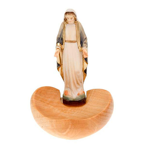 Die Statue hat eine Herz-Foermig-Basis aus Holz mit einem Lock fuer den Rosenkranz. Sie wird von den Handwerken aus Dolfi in Sued Tirol.