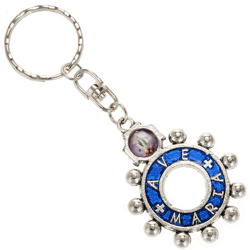 - Schlüsselanhänger Ring blaues Email Ave Maria (Englisch)