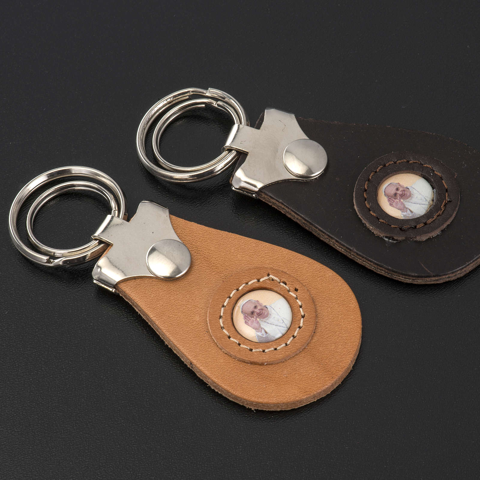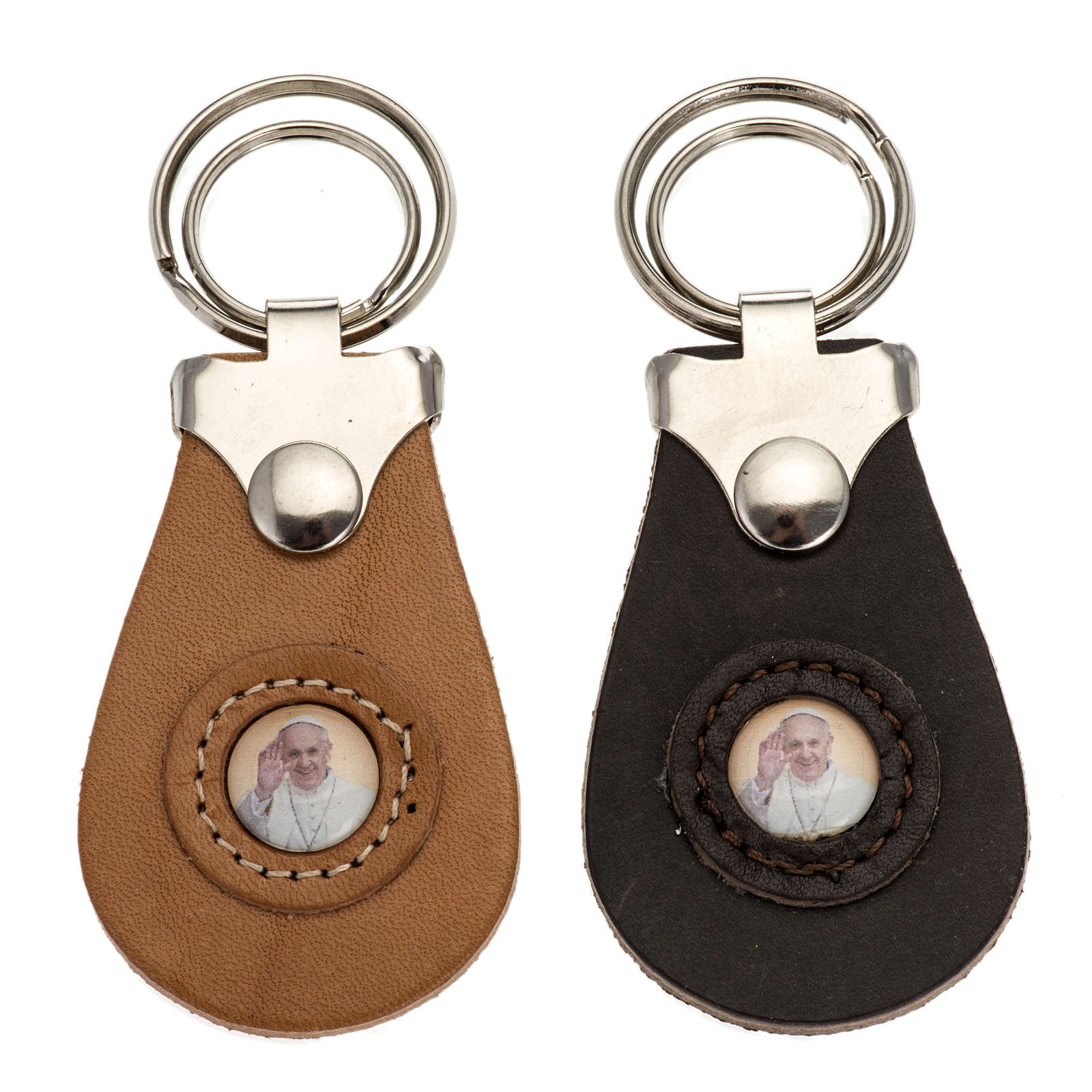 Schlüßel Anhänger Leder Papst Franziskus. Schlüßel Anhänger realisiert aus Leder und verfeinert mit dem Bild von Papst Franziskus.