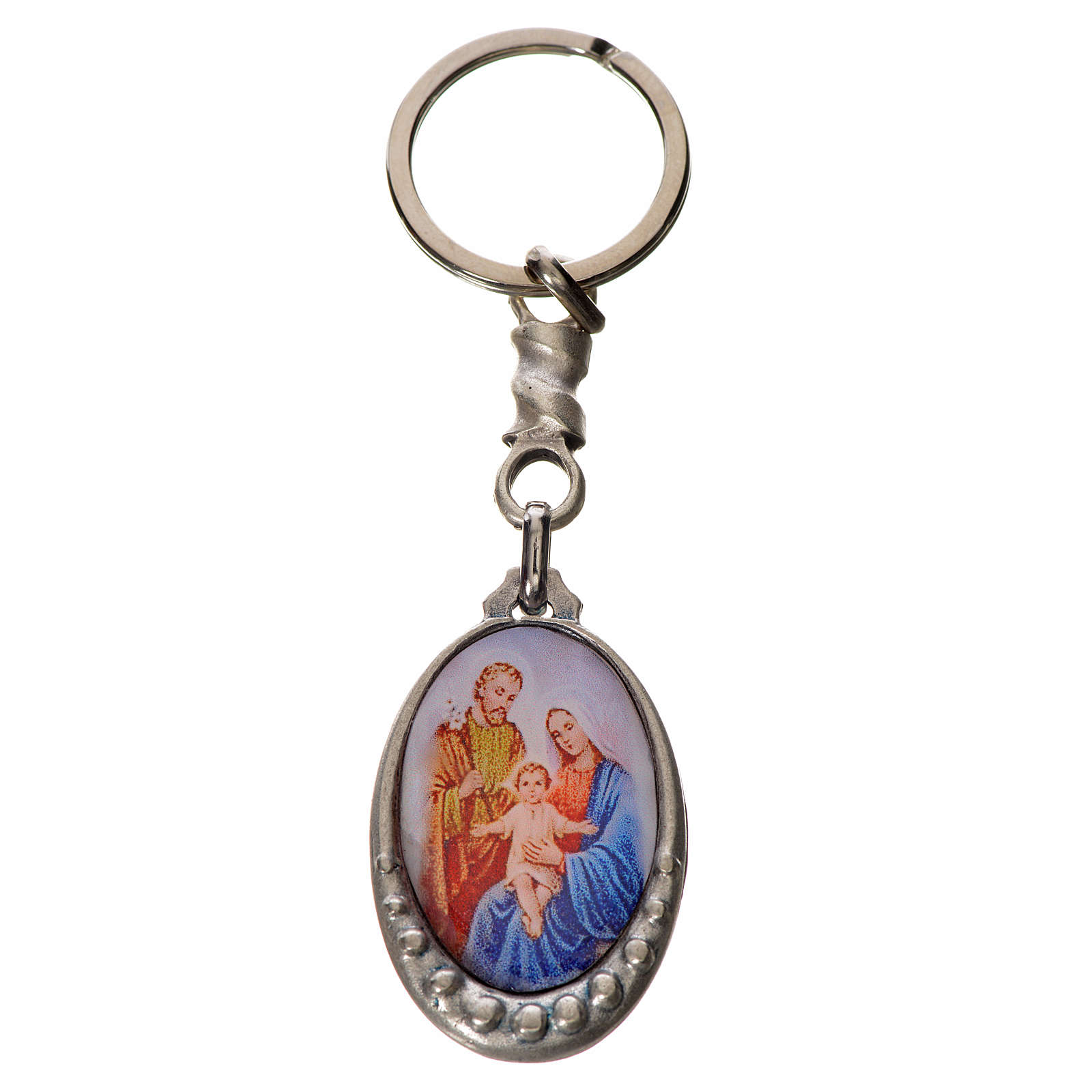 Schlüßel Anhänger oval Heilige Familie. Anhänger realisiert aus Zama Metall mit Dimensionen 4x2,5cm.