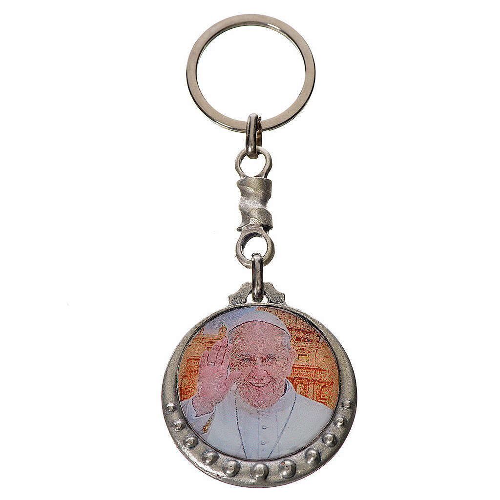 Schlüßel Anhänger Papst Franziskus. Schlüßel Anhänger realisiert aus Zama Metall mit Durchmesser 3,5cm.