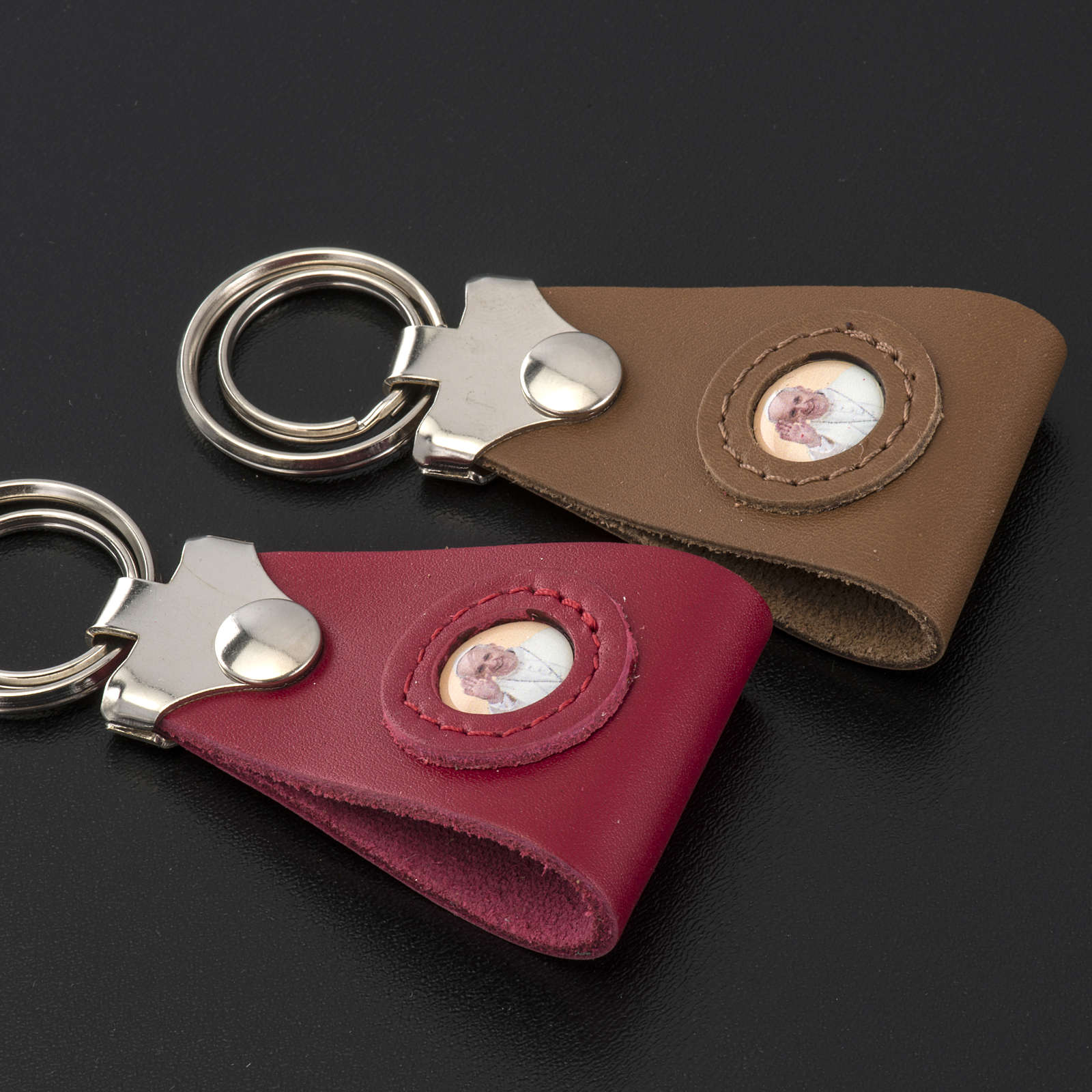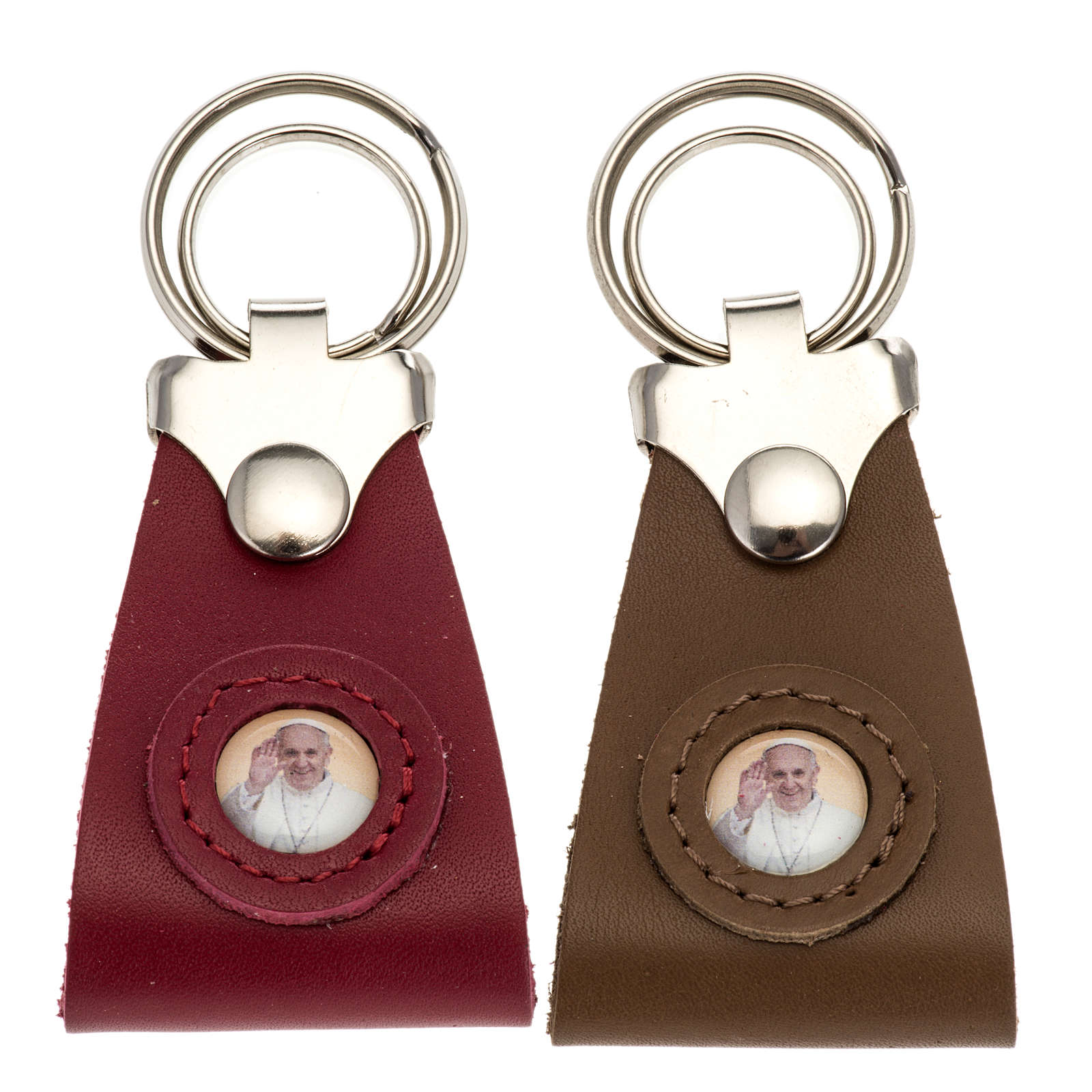 Schlüsselanhänger aus Leder mit Bild vom Papst Franziskus, hergestellt in Italien.