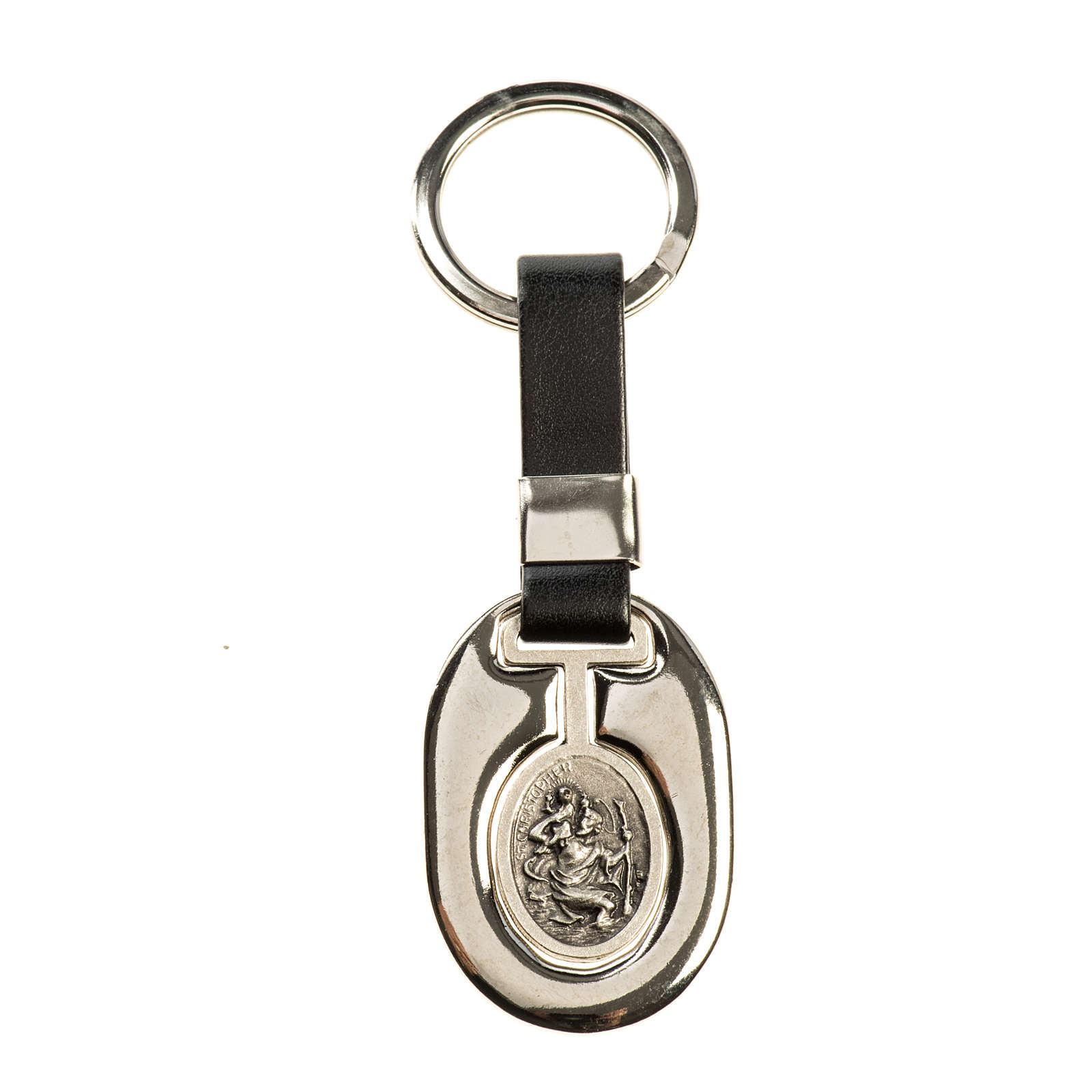 Schlüsselanhänger Heiliger Christoph aus Zamak-Legierung versilbert, mit Kunstleder-Bändchen.
