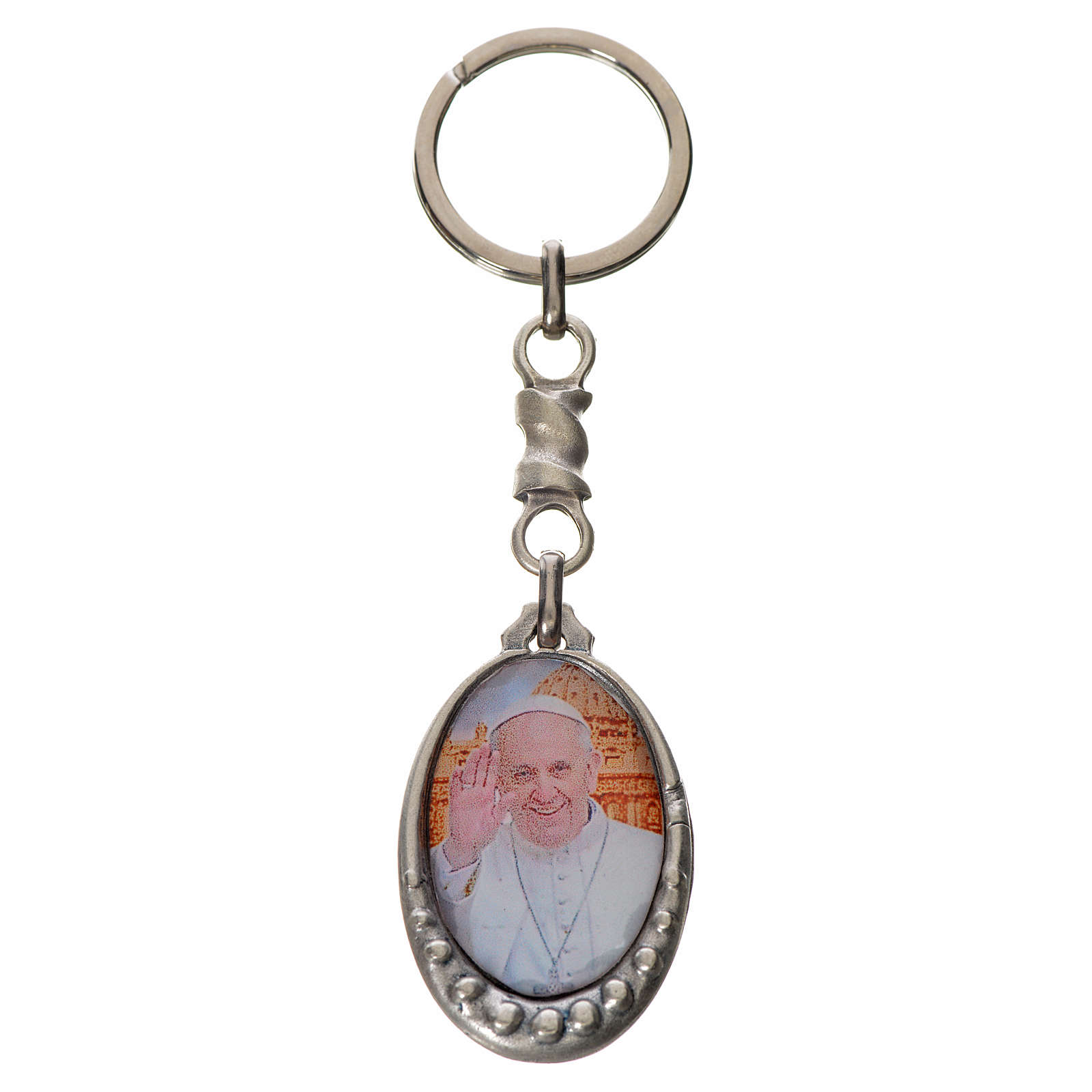 Schlüsselanhänger mit Bild Papst Franziskus oval Zamak