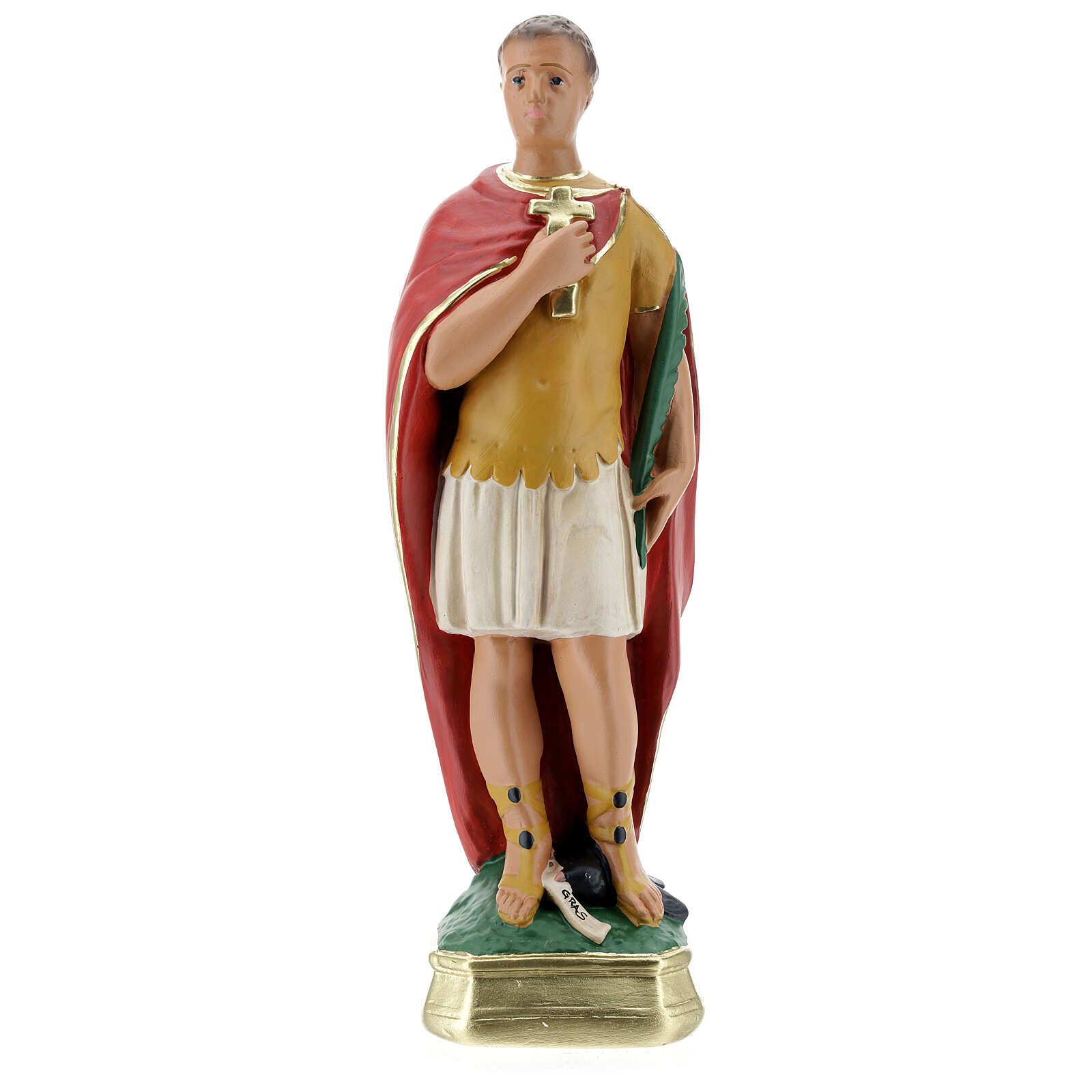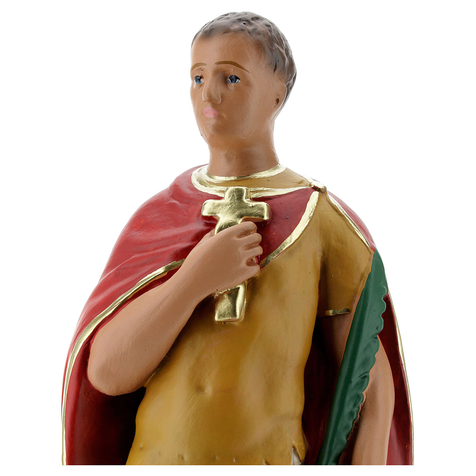 Schöne Statue von Expedit, angefertigt aus Gips und von Hand bemalt. Hergestellt wurde sie von dem italienischen Unternehmen Arte Barsanti, welches schon seit vielen Jahren religiöse und traditionelle Figuren und Krippenzubehör herstellt.