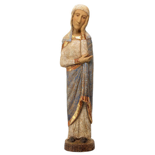 Die Jungfrau steht auf einem runden Sockel mit zur Seite geneigtem Kopf, der von einer Hand gestützt wird, und hat einen traurigen und betrübten Gesichtsausdruck. Das ganz aus Holz gefertigte Objekt wurde von erfahrenen Mönchen des Klosters Bethléem (Frankreich) im Atelier Saint Joseph de Bethléem geschnitzt und anschließend handbemalt. Ein besonderes Element ist der antike Effekt, ...