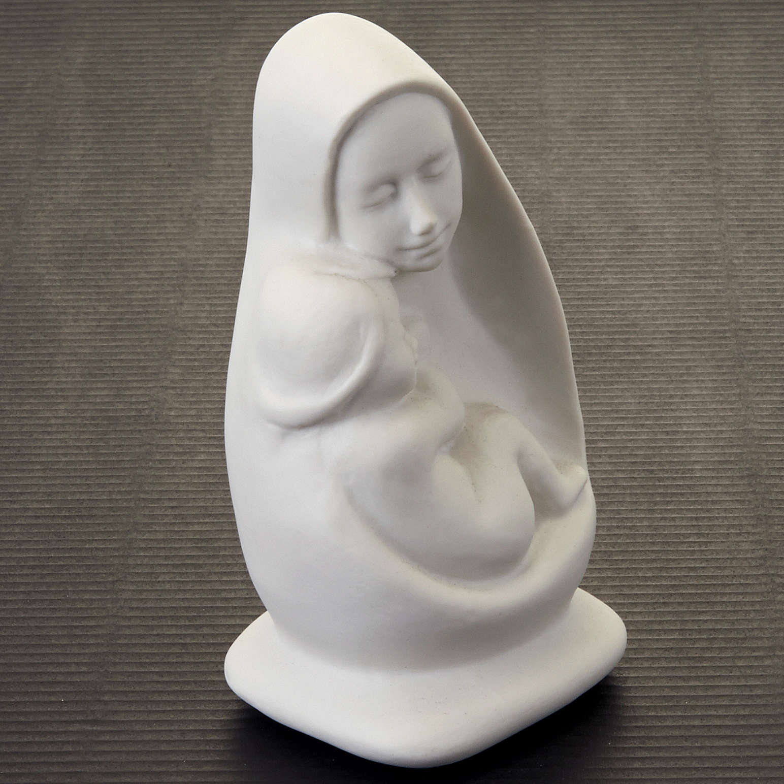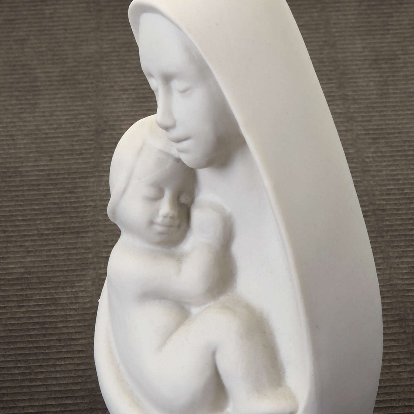 Büste Madonna mit Kind in weißem Porzellan von Francesco Pinton: die Madonna umarmt das Kind; reine, weiche Lininen machen daraus ein ausdrucksvolles raffiniertes Objekt.