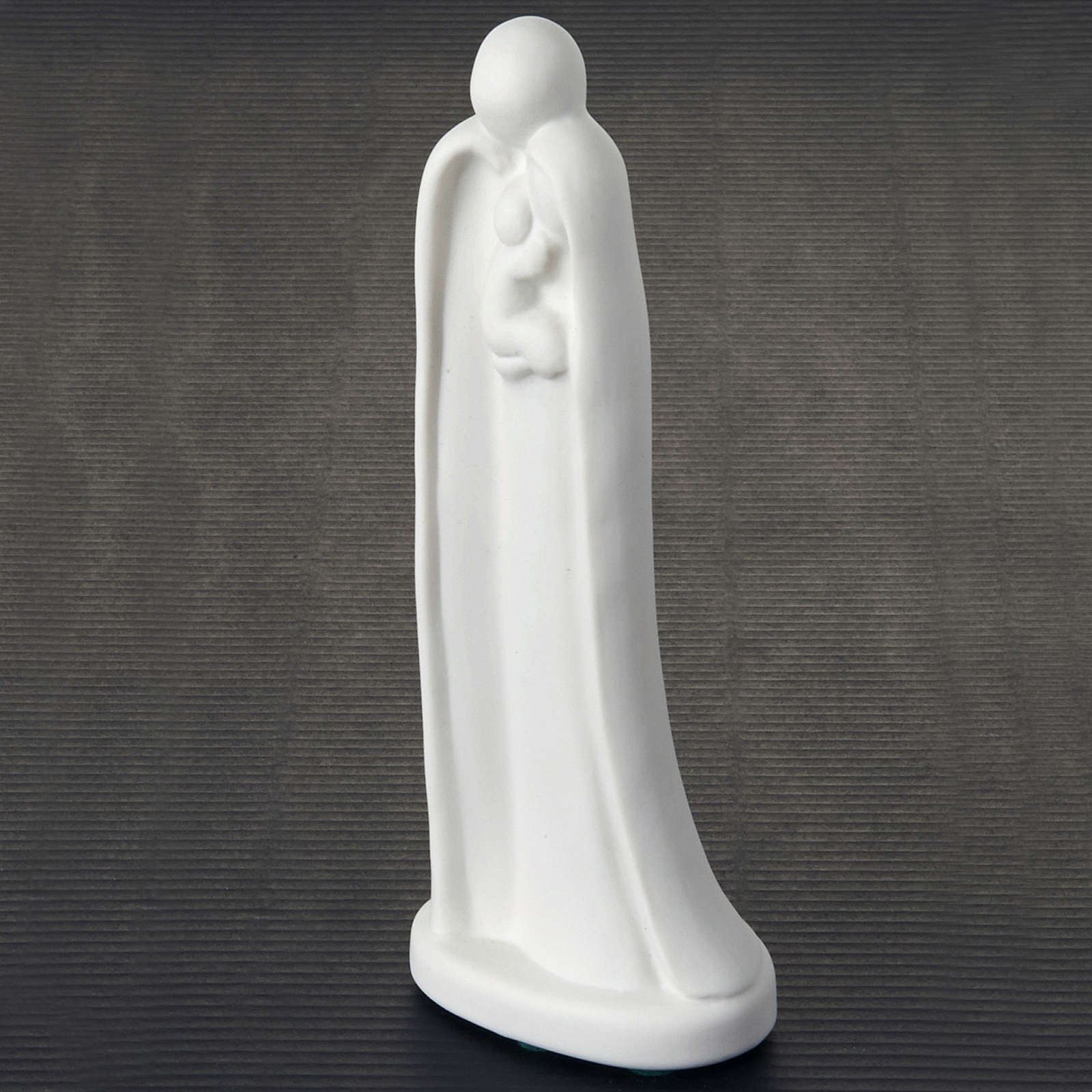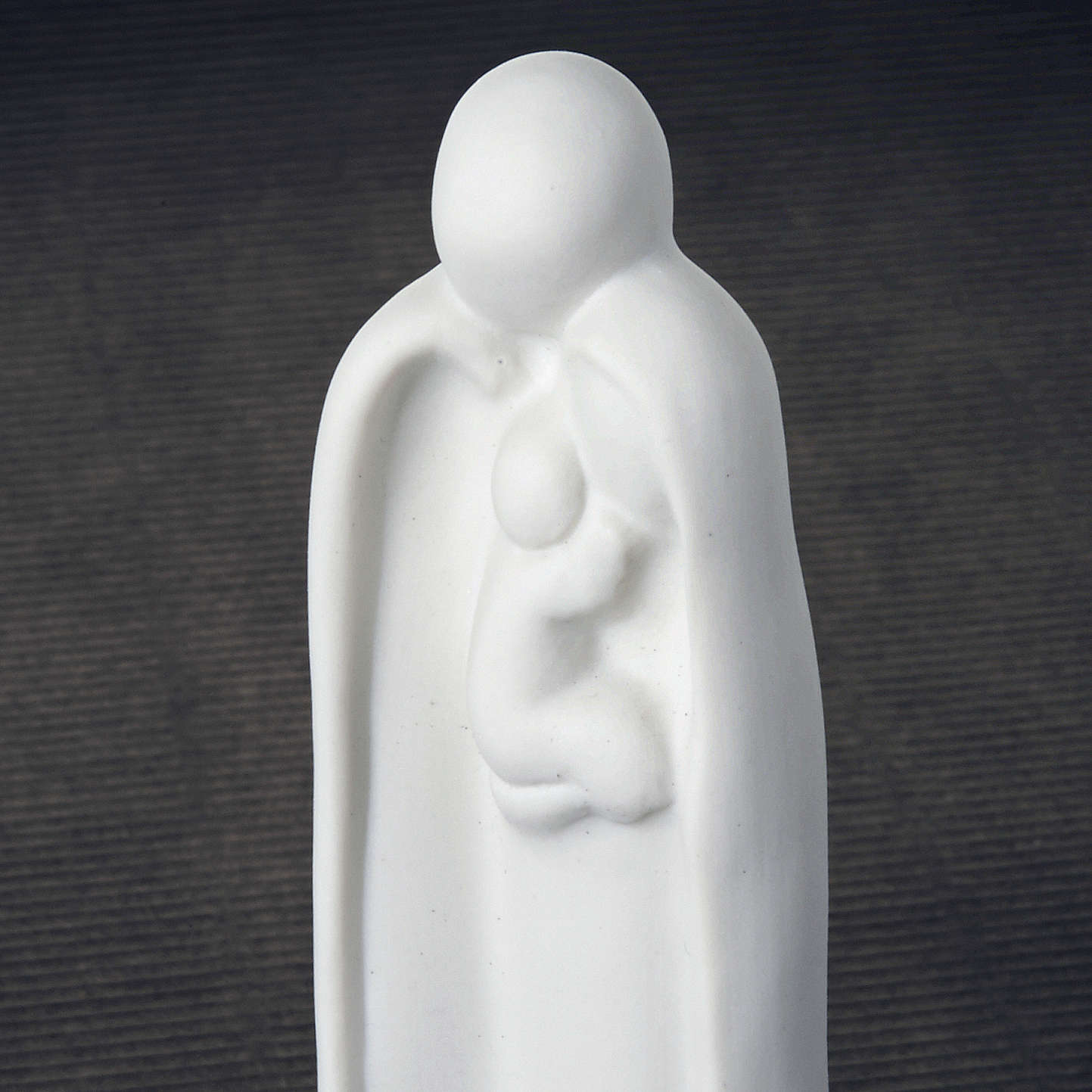 Stilisierte Statue der Heiligen Familie aus weißem Porzellan von Franceso Pinton auf dunkler Basis. Die drei Personen sind aus einem Guß, elegant und schlicht. Es ist zertiiziert dass es aus dem Pinton gemacht ist.