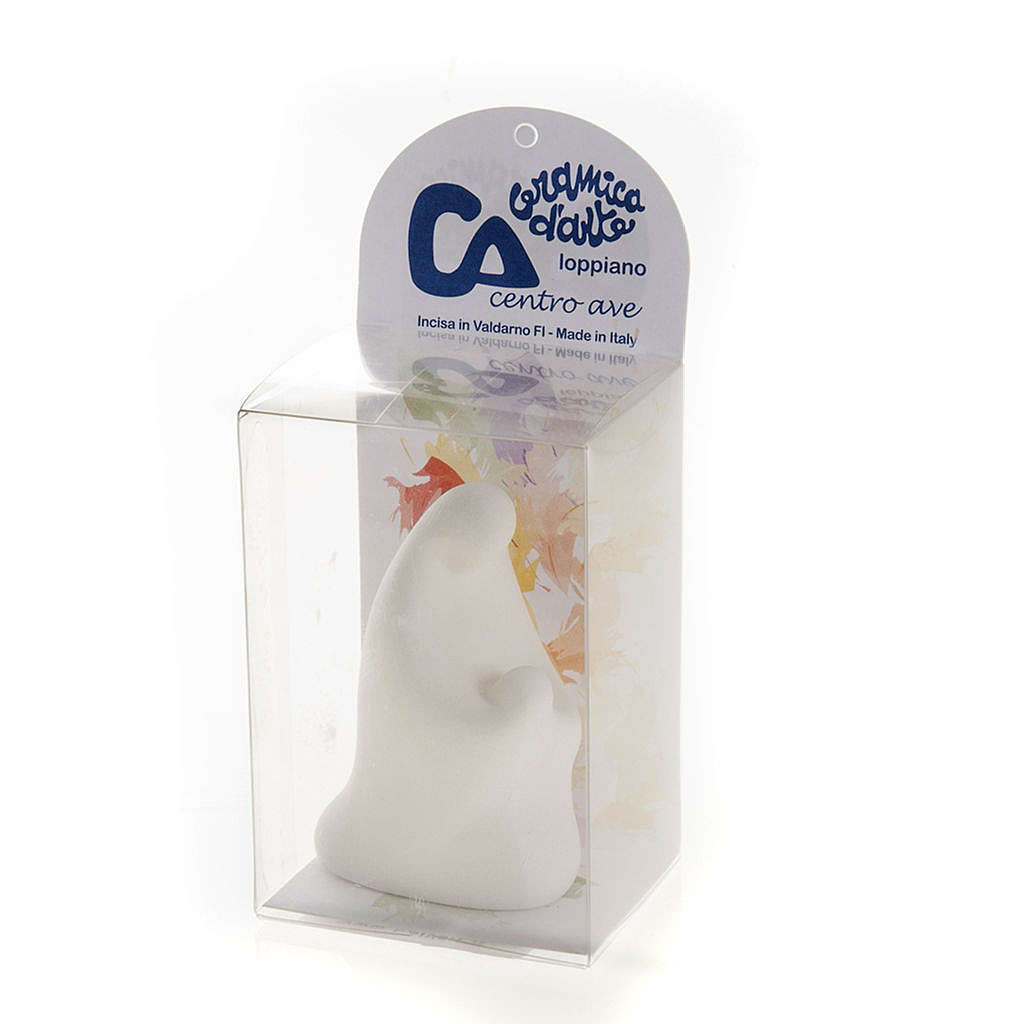 Kleine Madonna Terrakotta 6 cm. Heiligenfigur aus Schamott mit Basis aus Holz. Der Ton wird zuerst handgearbeitet und dann bei über 1000 °C gebrannt. Hochwertiges Produkt in Italien hergestellt.