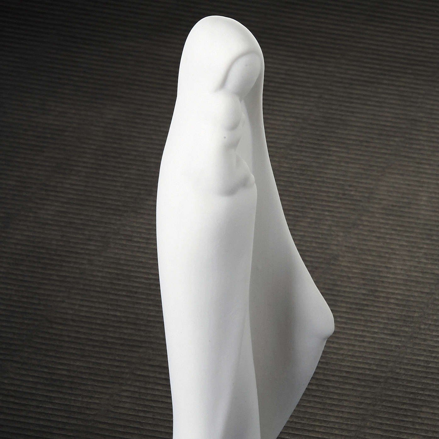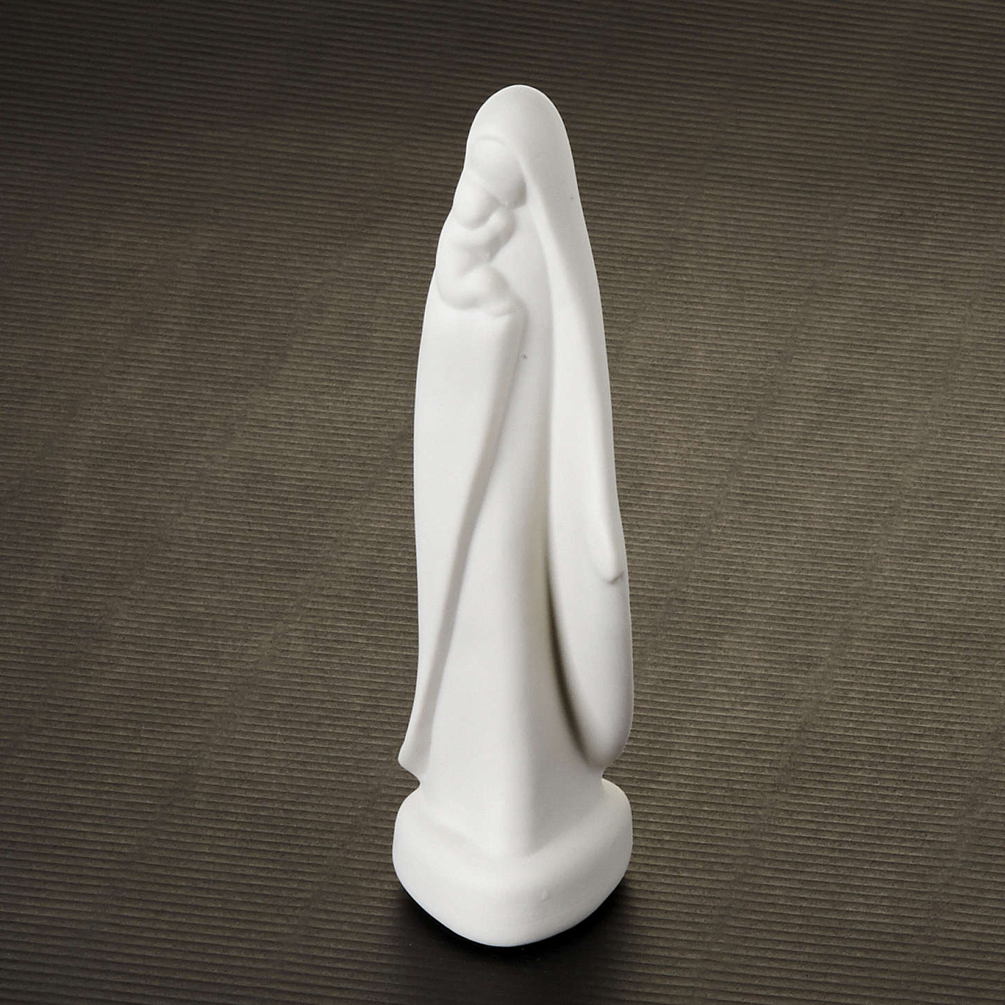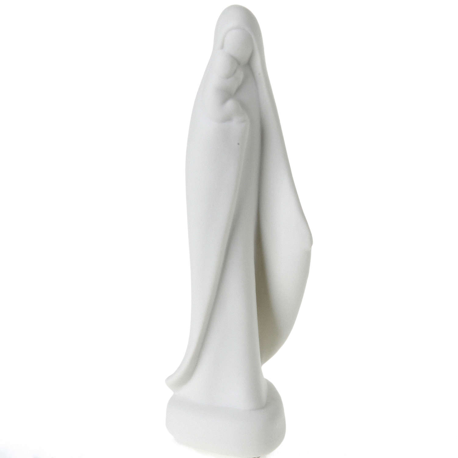 Miniatur Gottesmutter mit Christkind. Statue realisiert aus weiße Porzellan bei Franceso Pinton. Die nüchternen und harmonischen Linien unterstreichen den einfachen Stil.