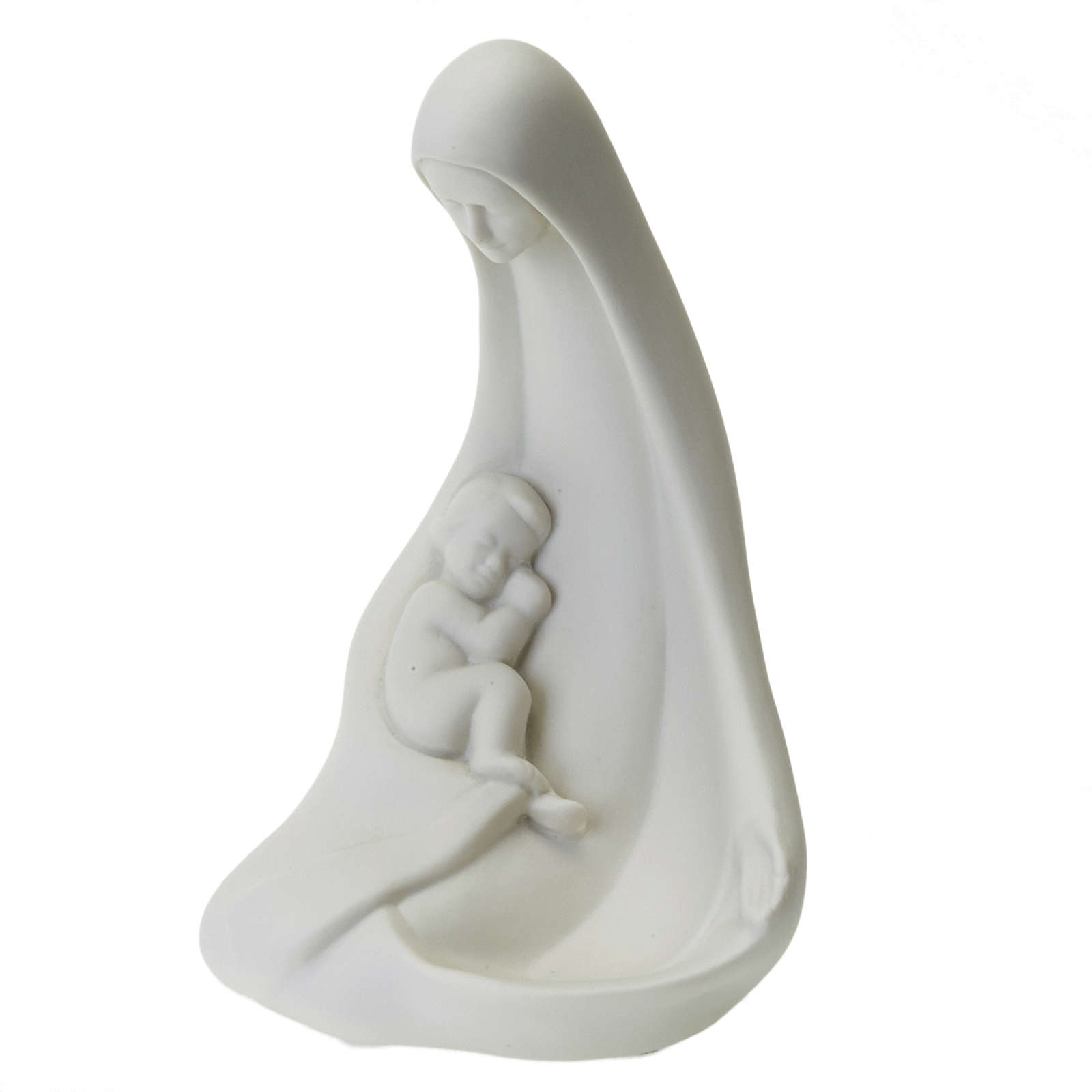 Sitzende Madonna mit schlafendem Kind, aus weißem Porzellan, hergestellt und signiert von Francesco Pinton.