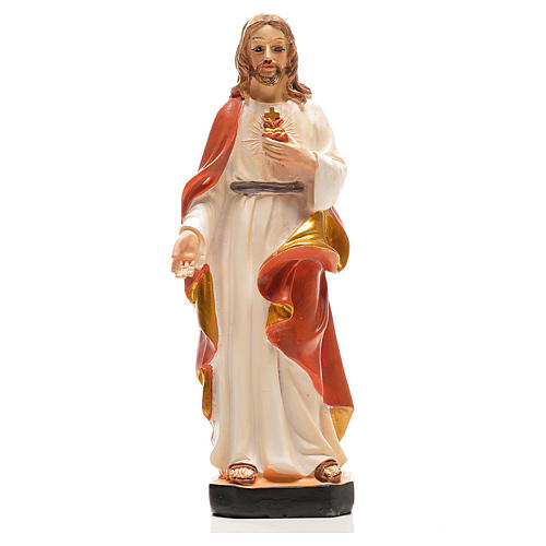 Heiliges Herz Jesu 12 cm: Statue mit Heiligenbildchen und Gebet auf Englisch.