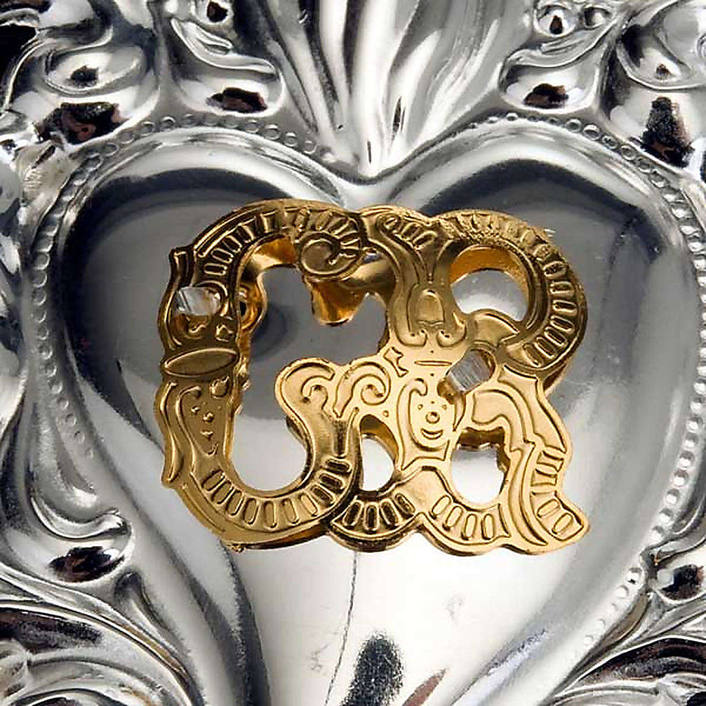 Votivgabe flammendes Herz. Auf dem Herzen sind die goldfarbenen Lettern GR (Grazia Ricevuta = erhaltene Gnade) aufgebracht. Die Votivgabe ist in 2 Varianten erhältlich: